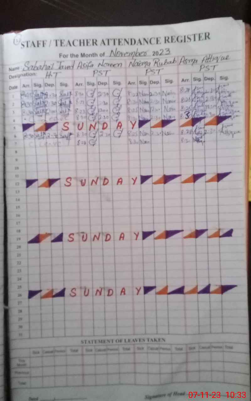 | Attendance Register | Head Teacher | MEA with School | Visit Proof |