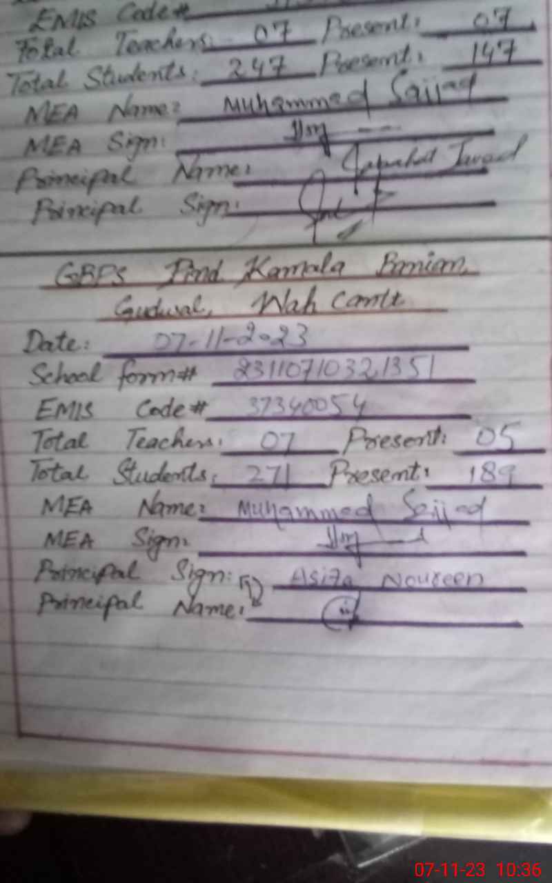 | EMIS Code: 37340054 | Name of School: GPS PIND KAMALA BANIAN | |||