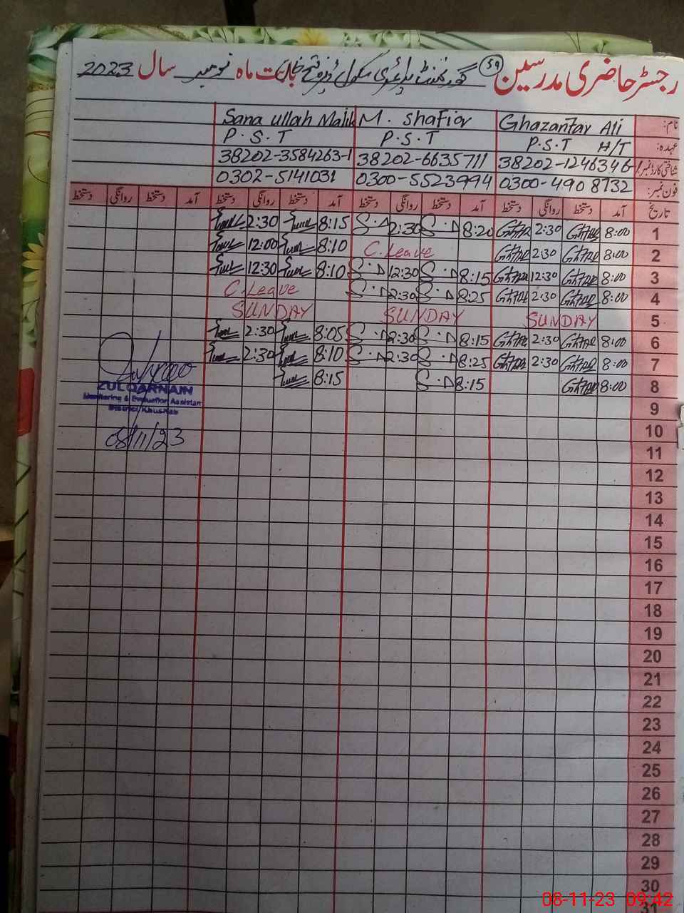 | Name: Gh**** Al**** Designation: (School Headmaster's/Headmistress's) PST Phone/Cell Number: 03**** |