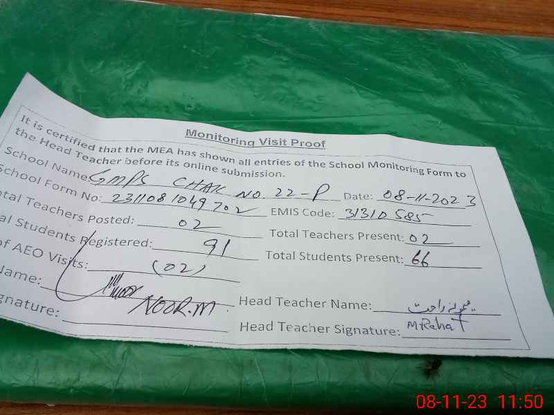 | EMIS Code: 31310585 | Name of School: GMPS CHAK 22/P | |||
