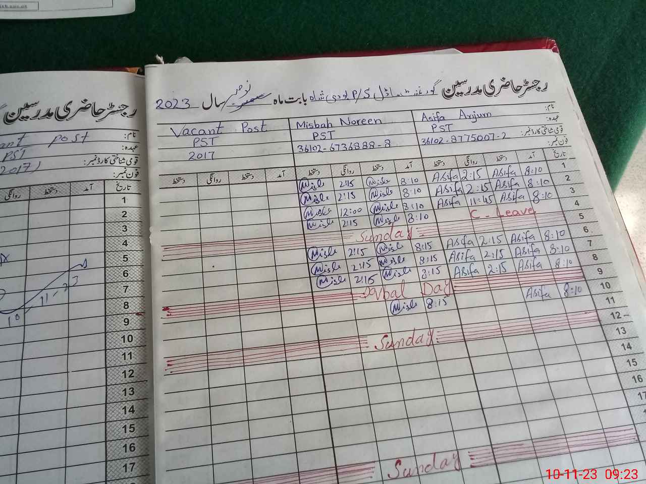 | Name: AS**** AN**** Designation: (School Headmaster's/Headmistress's) PST Phone/Cell Number: 03**** |