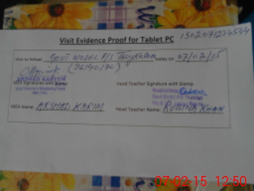 | Attendance Register | Head Teacher | MEA with School | Visit Proof |