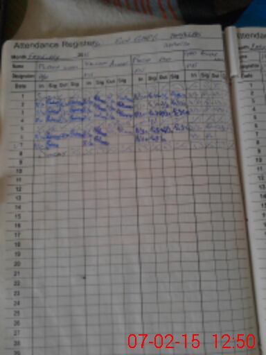 | CNIC | Full Name | Designation | R/C | Absence During Last Calender Month |