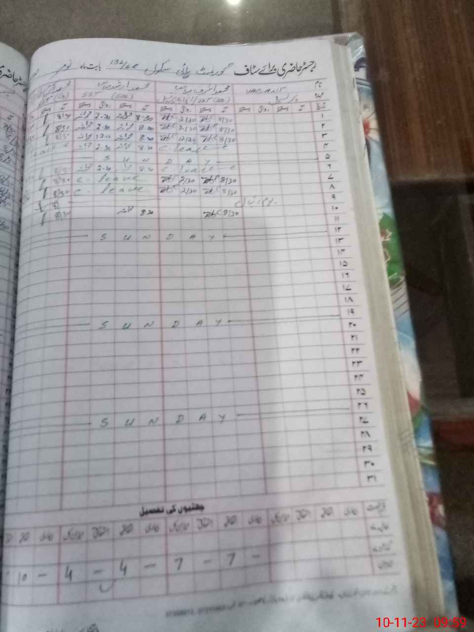 | CNIC | Full Name | Designation | R/C | Absence During Last Calender Month |