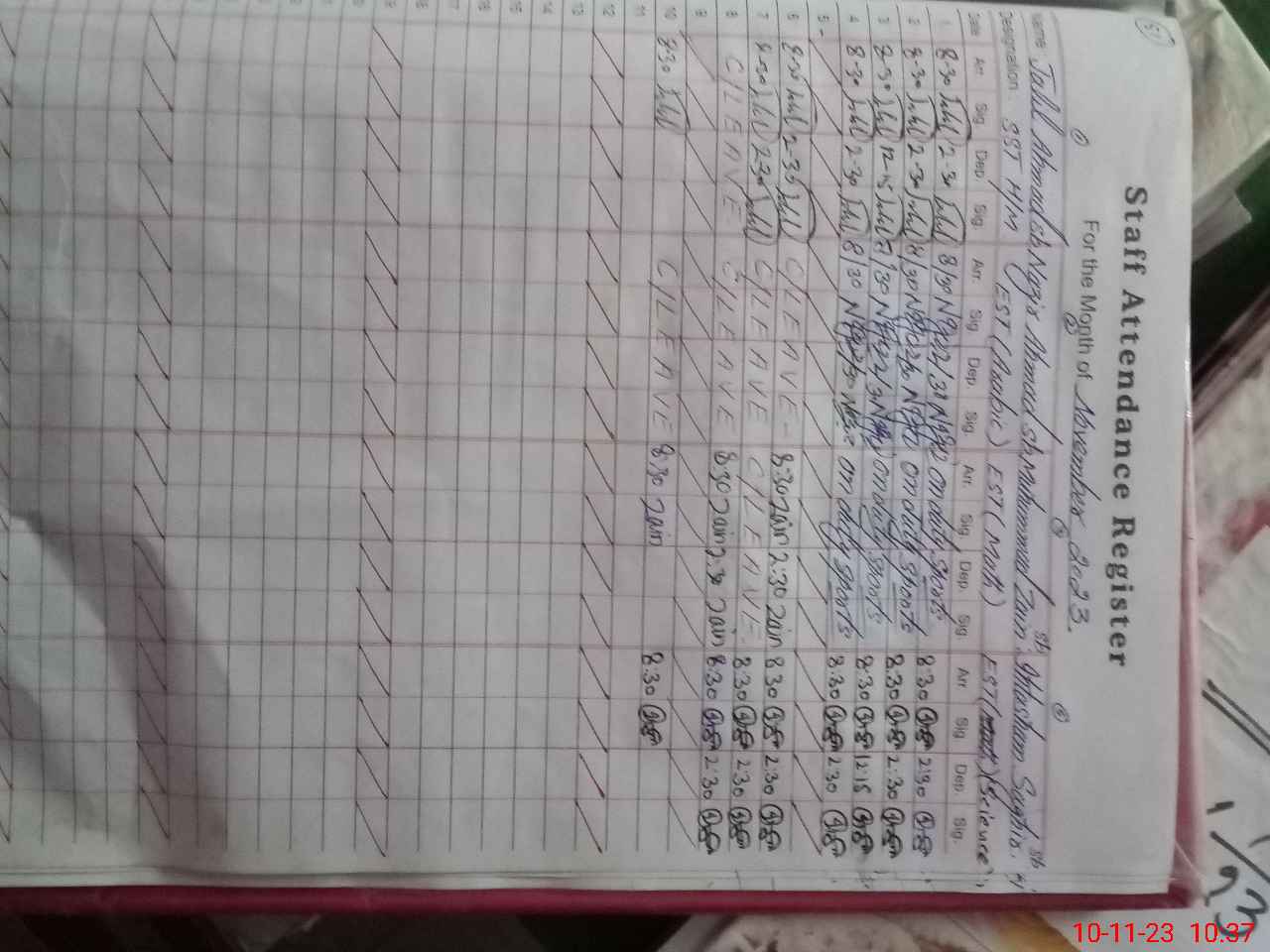 | CNIC | Full Name | Designation | R/C | Absence During Last Calender Month |