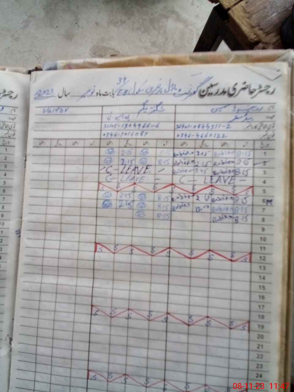 | CNIC | Full Name | Designation | R/C | Absence During Last Calender Month |