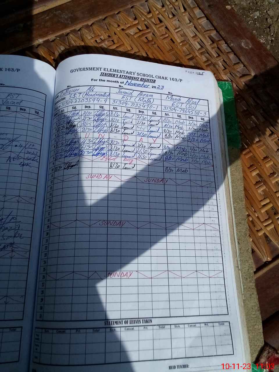 | Name: Zu**** Al**** Designation: (School Headmaster's/Headmistress's) SST Phone/Cell Number: 03**** |