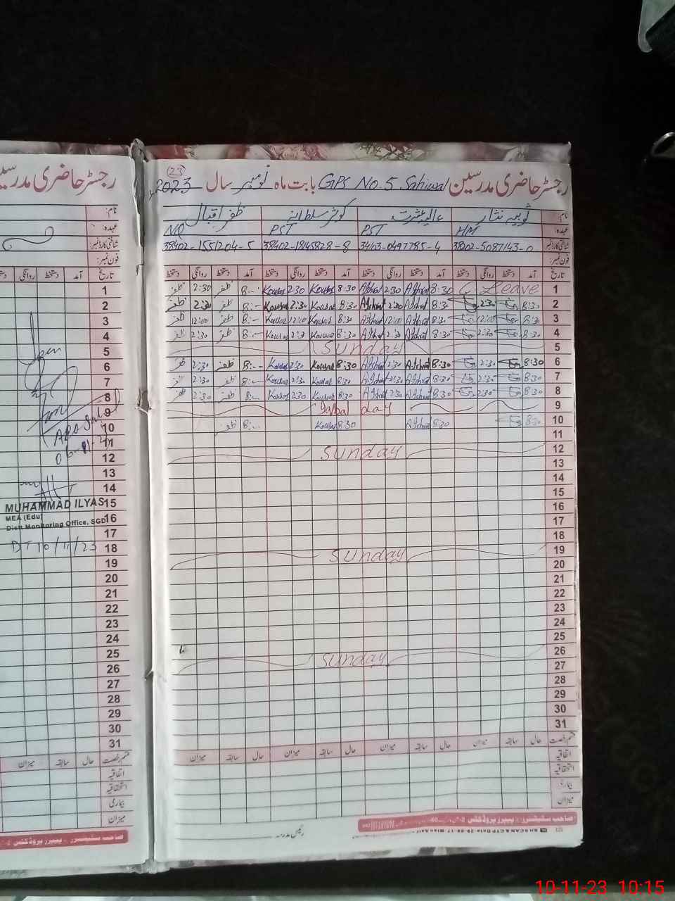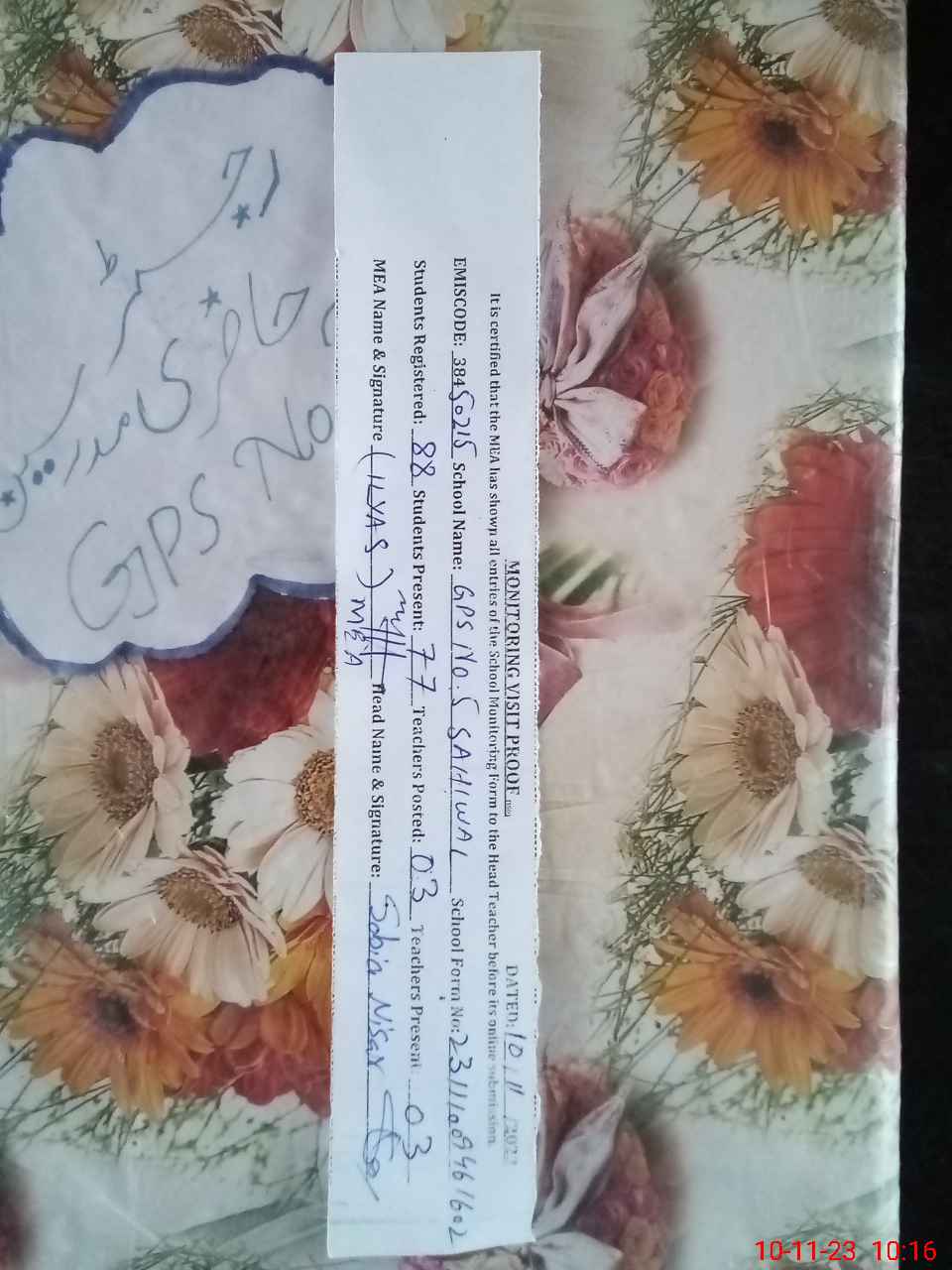 | EMIS Code: 38450215 | Name of School: GPS NO.5 SAHIWAL | |||