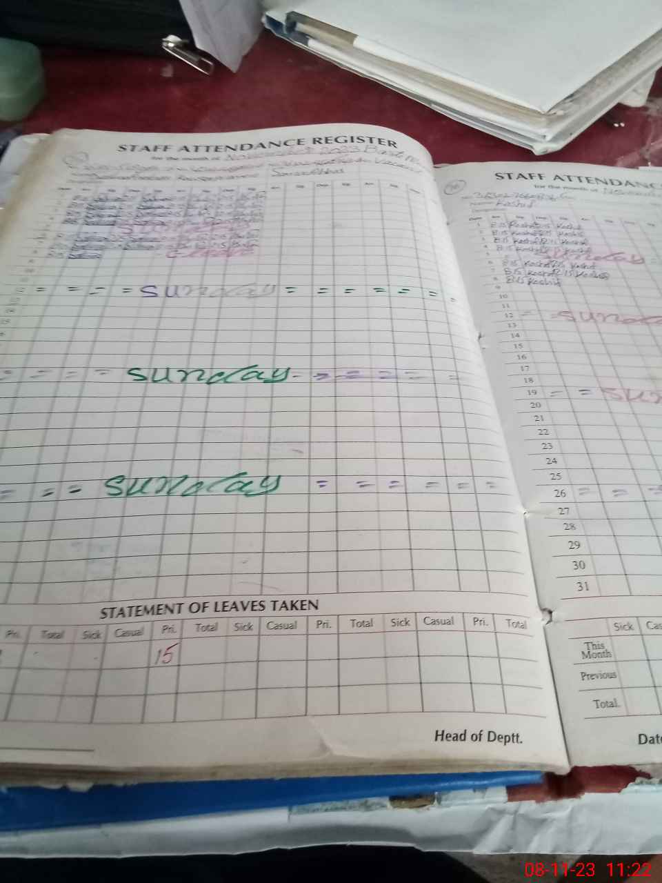 | Leave | Duty | Absent | Maternity | Medical | Ex- Pak |