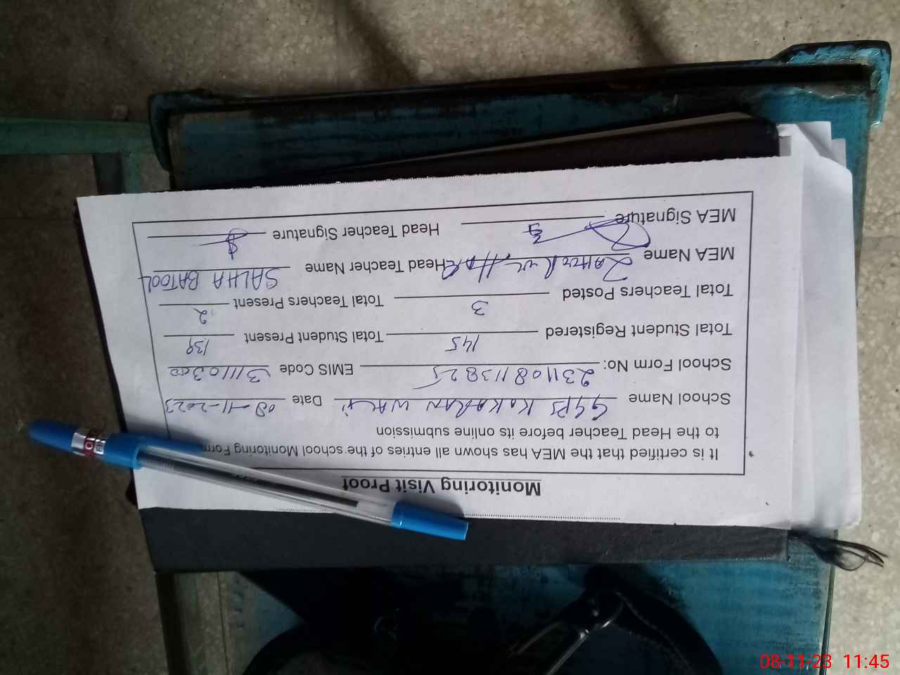 | Attendance Register | Head Teacher | MEA with School | Visit Proof |