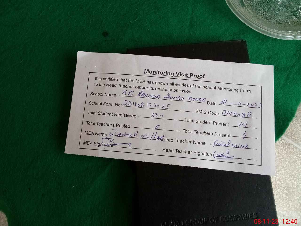 | EMIS Code: 31110088 | Name of School: GPS RAHIMIA DUNGA BUNGA | |||