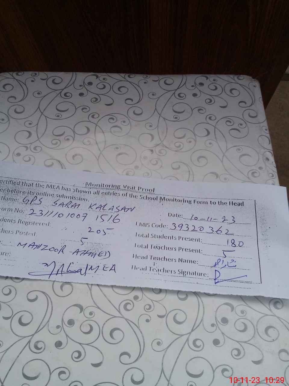 | EMIS Code: 39320362 | Name of School: GPS SARAI KALASAN | |||