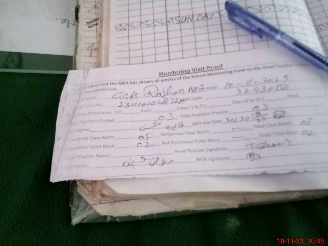 | Attendance Register | Head Teacher | MEA with School | Visit Proof |