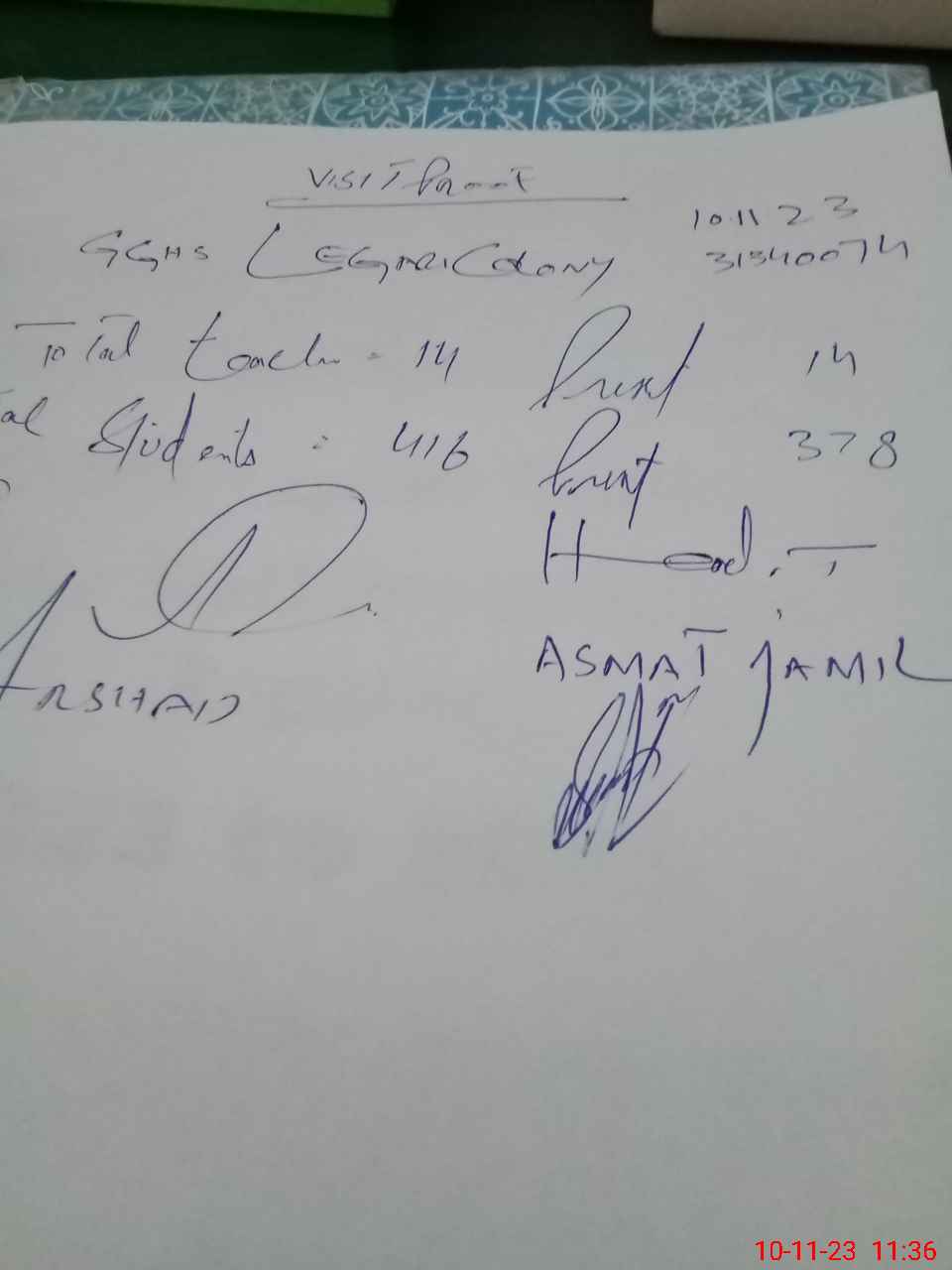 | EMIS Code: 31340074 | Name of School: GGHS LEGHARI COLONY | |||
