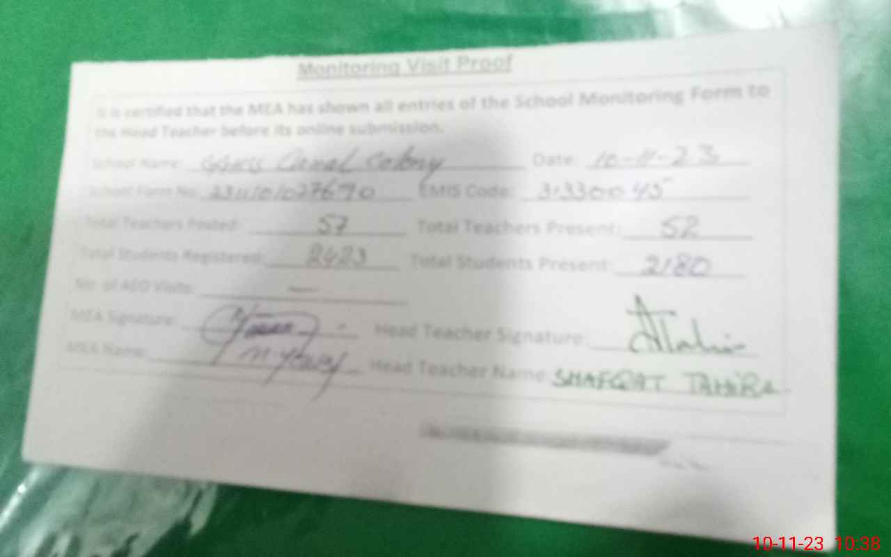 | EMIS Code: 31330045 | Name of School: GGHSS CANAL COLONY | |||