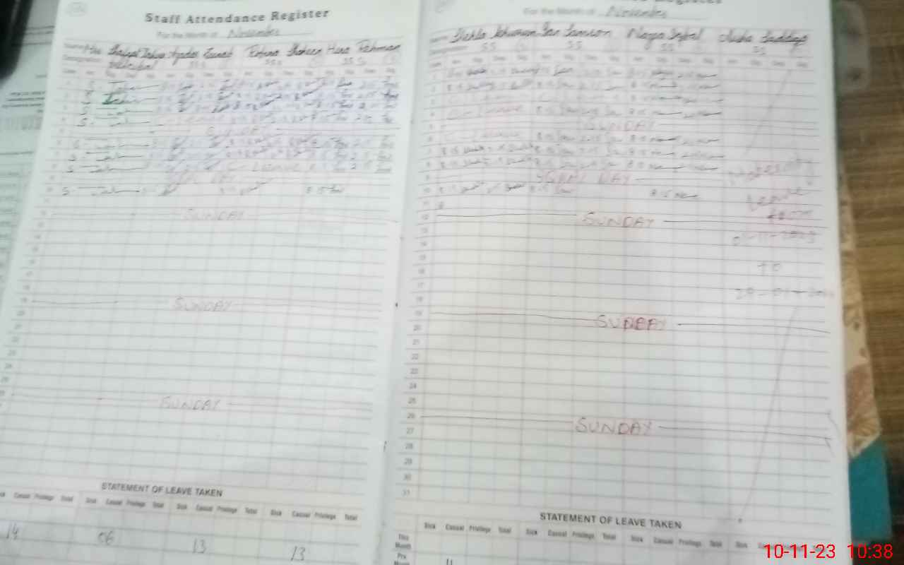 | CNIC | Full Name | Designation | R/C | Absence During Last Calender Month |