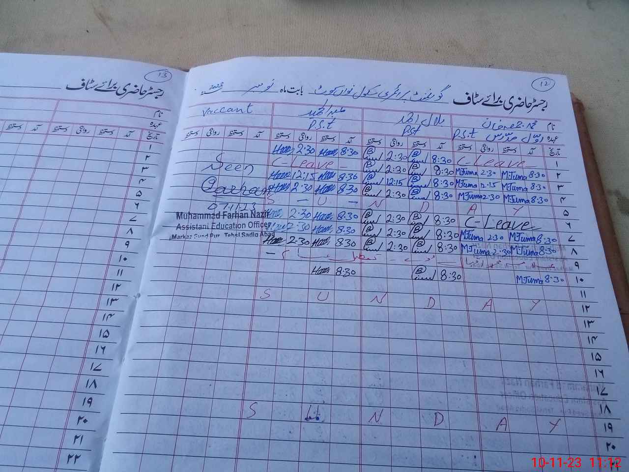 | Name: M.**** KH**** Designation: (School Headmaster's/Headmistress's) PST/PTC/JV Phone/Cell Number: 03**** |