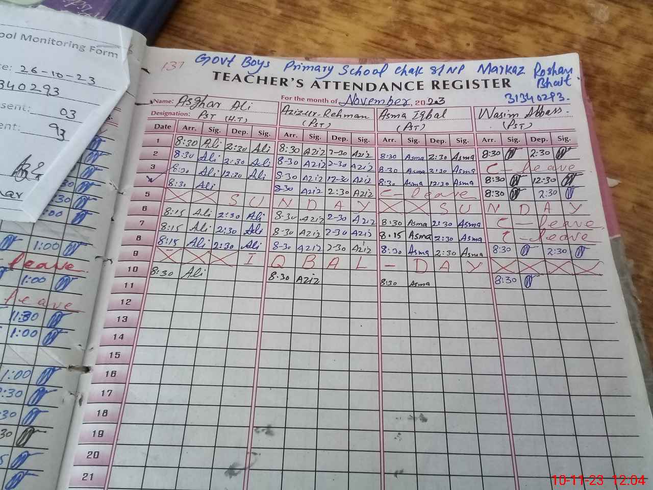 | Name: As**** Al**** Designation: (School Headmaster's/Headmistress's) PST/PTC/JV Phone/Cell Number: 03**** |