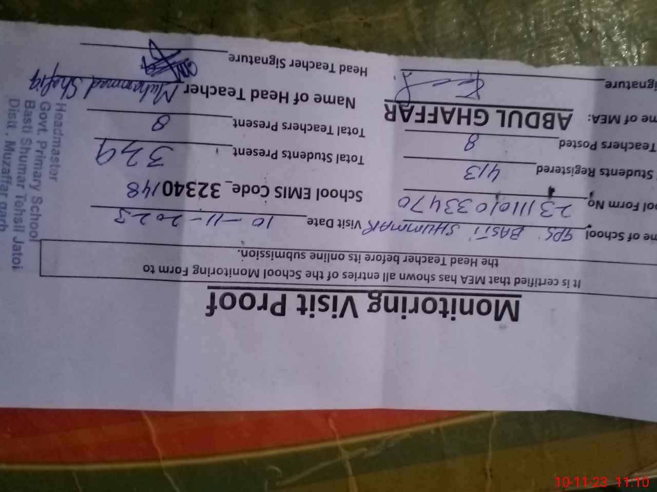 | EMIS Code: 32340148 | Name of School: GPS BASTI SHUMAR | |||