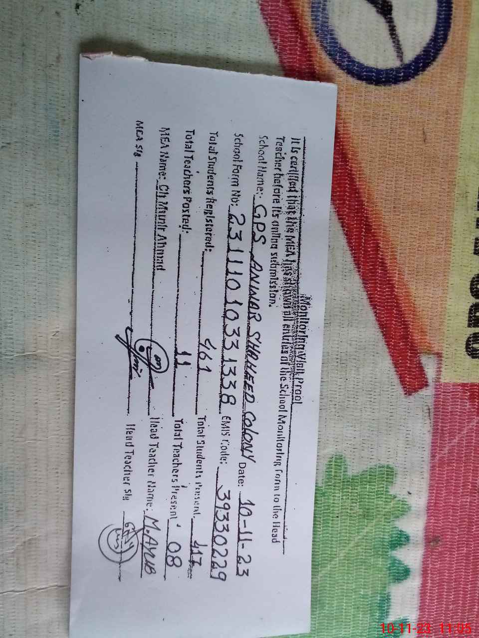 | EMIS Code: 39330229 | Name of School: GPS ANWAR SHAHEED COLONY | |||