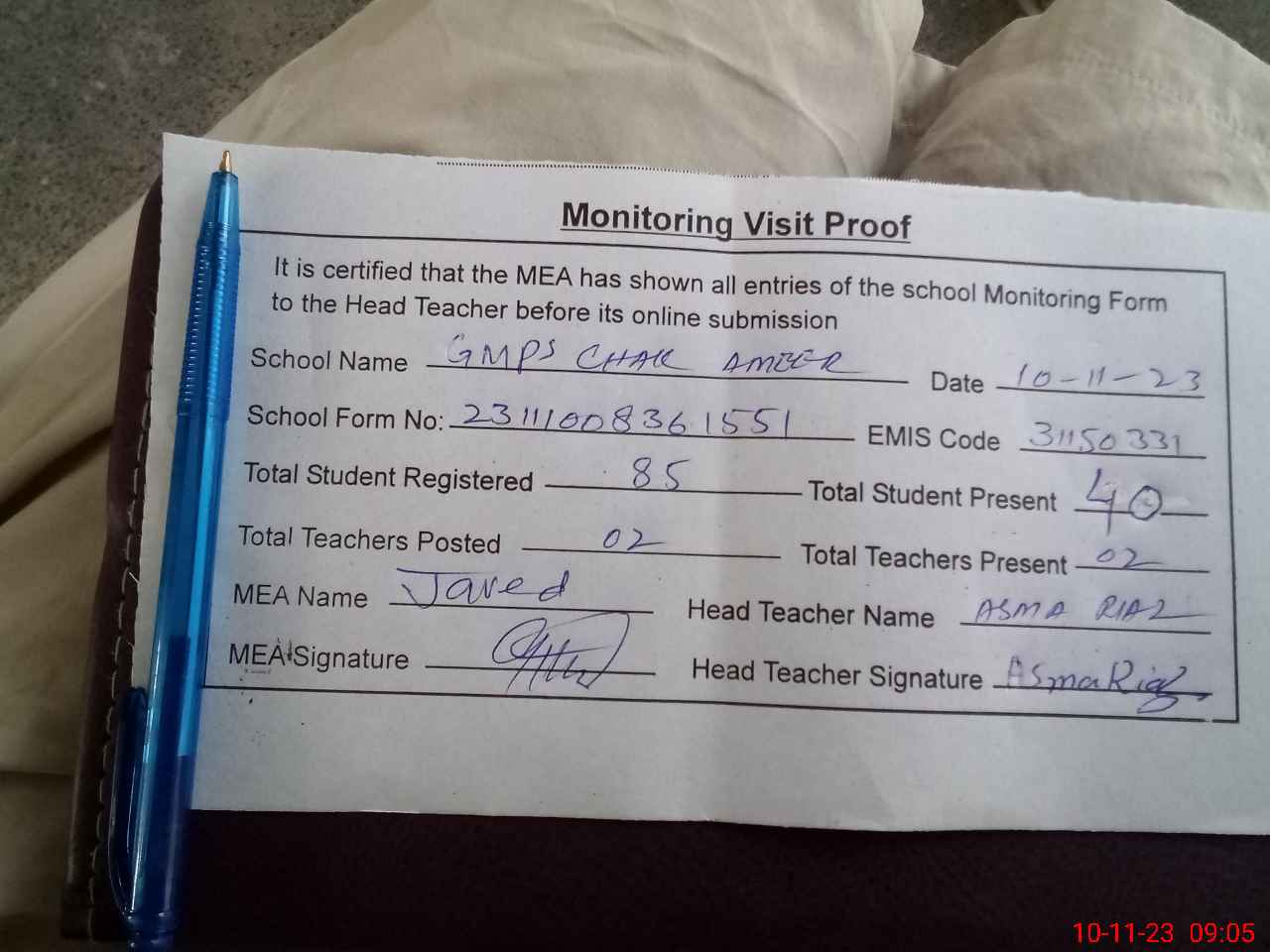 | EMIS Code: 31150331 | Name of School: GMPS CHAK AMEER | |||