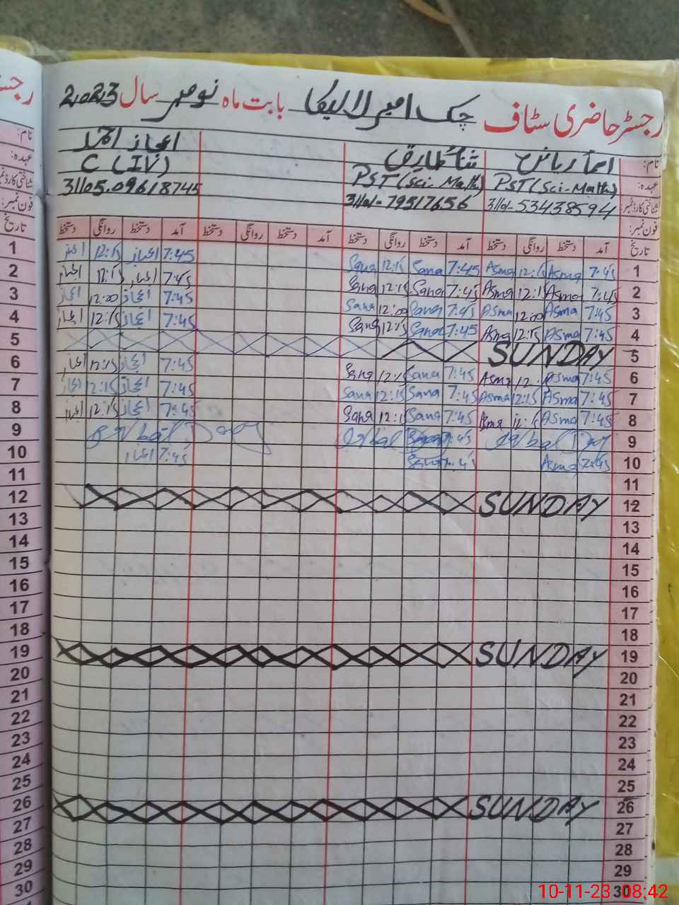 | Name: As**** Ri**** Designation: (School Headmaster's/Headmistress's) PST Phone/Cell Number: 03**** |
