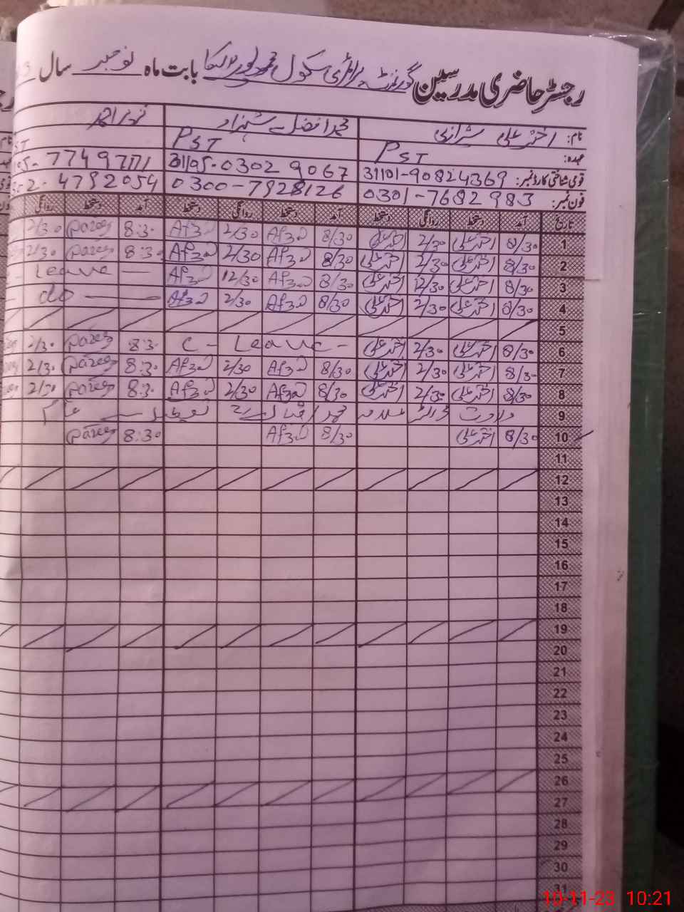 | Name: AK**** AL**** Designation: (School Headmaster's/Headmistress's) PST Phone/Cell Number: 03**** |