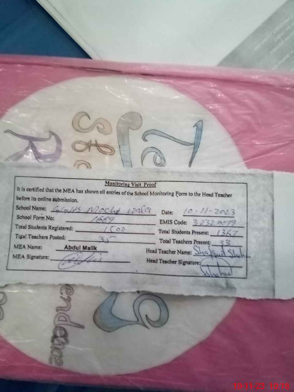 | EMIS Code: 32320079 | Name of School: GGHS MOCHI WALA | |||