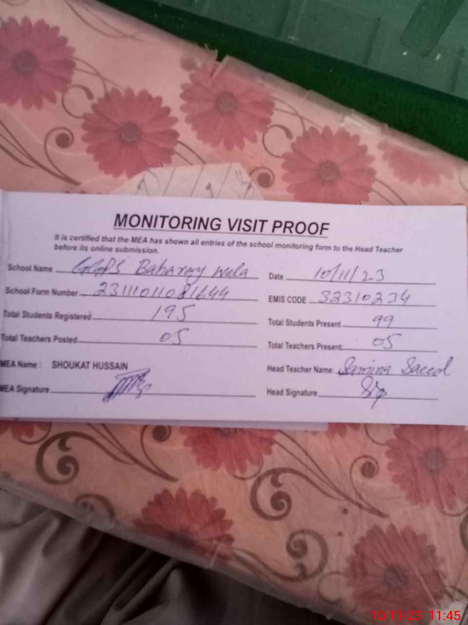 | EMIS Code: 32310234 | Name of School: GGPS BAHARAY WALA | |||