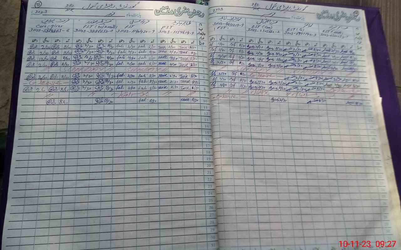 | CNIC | Full Name | Designation | R/C | Absence During Last Calender Month |