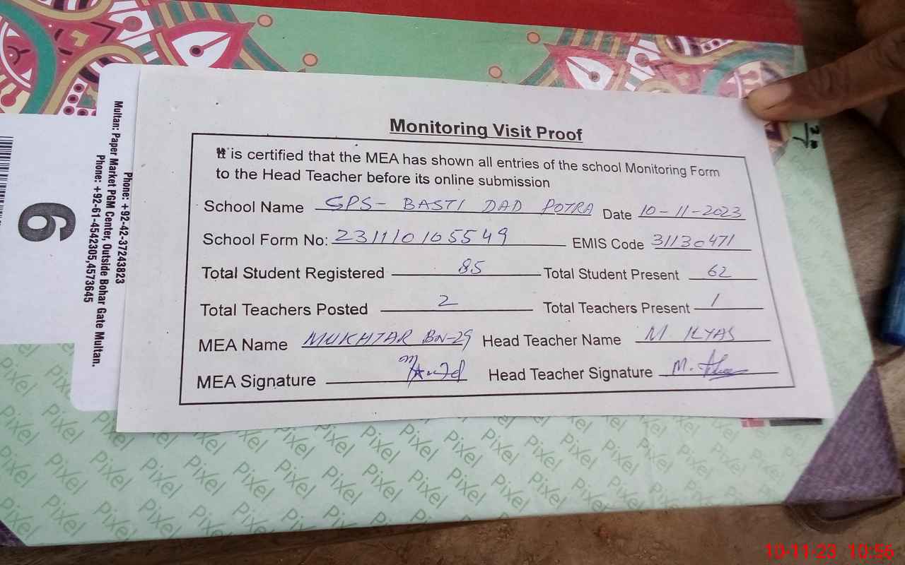 | EMIS Code: 31130471 | Name of School: GPS BASTI DADAPOTRA | |||