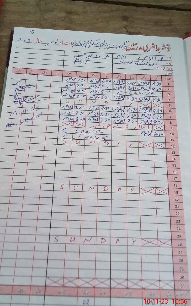 | Name: MU**** IL**** Designation: (School Headmaster's/Headmistress's) PST Phone/Cell Number: 03**** |