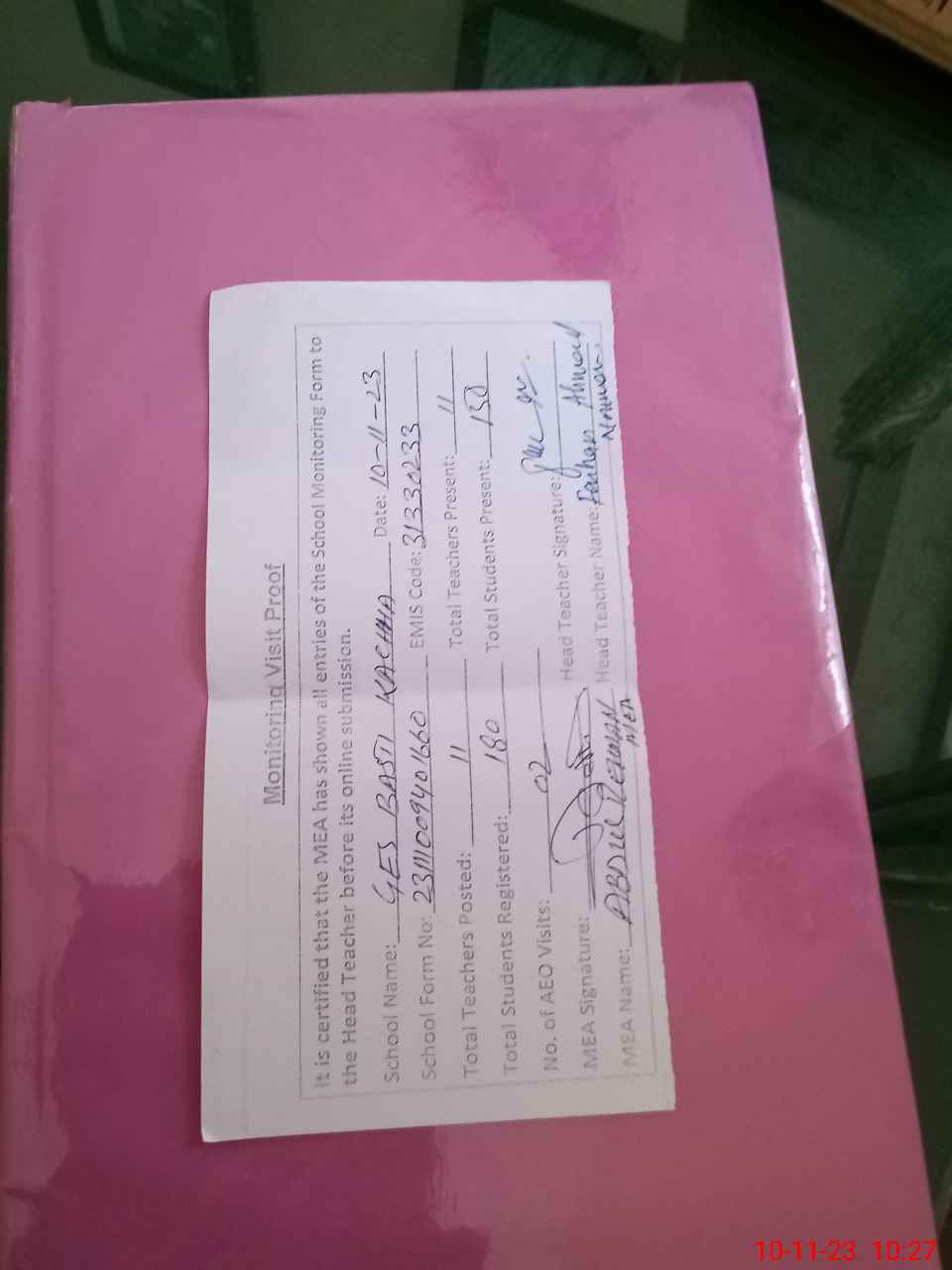 | EMIS Code: 31330233 | Name of School: GES BASTI KACHA | |||