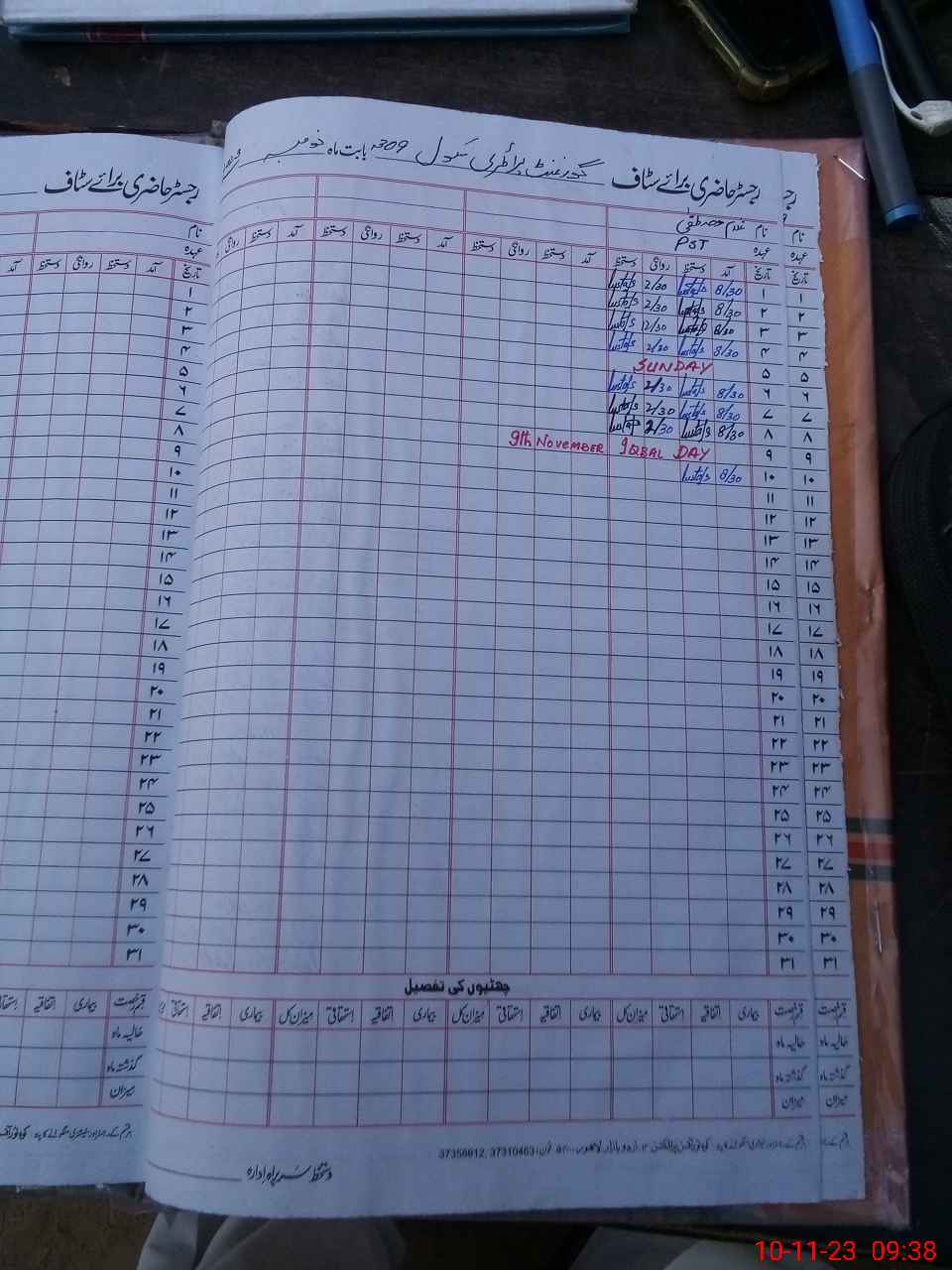 | CNIC | Full Name | Designation | R/C | Absence During Last Calender Month |