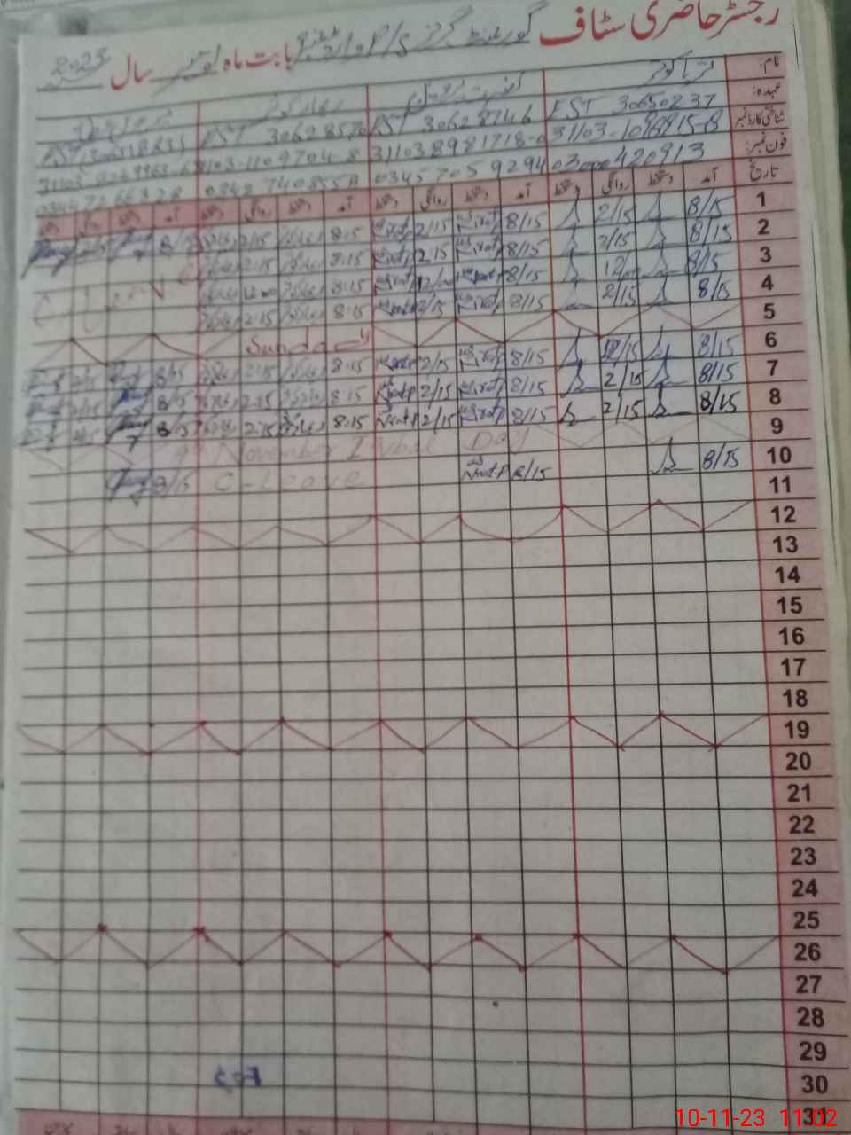 | CNIC | Full Name | Designation | R/C | Absence During Last Calender Month |