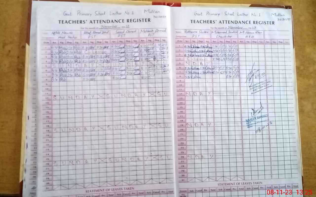| Attendance Register | Head Teacher | MEA with School | Visit Proof |