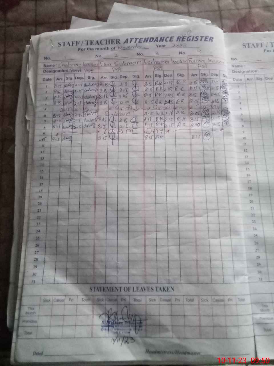 | CNIC | Full Name | Designation | R/C | Absence During Last Calender Month |