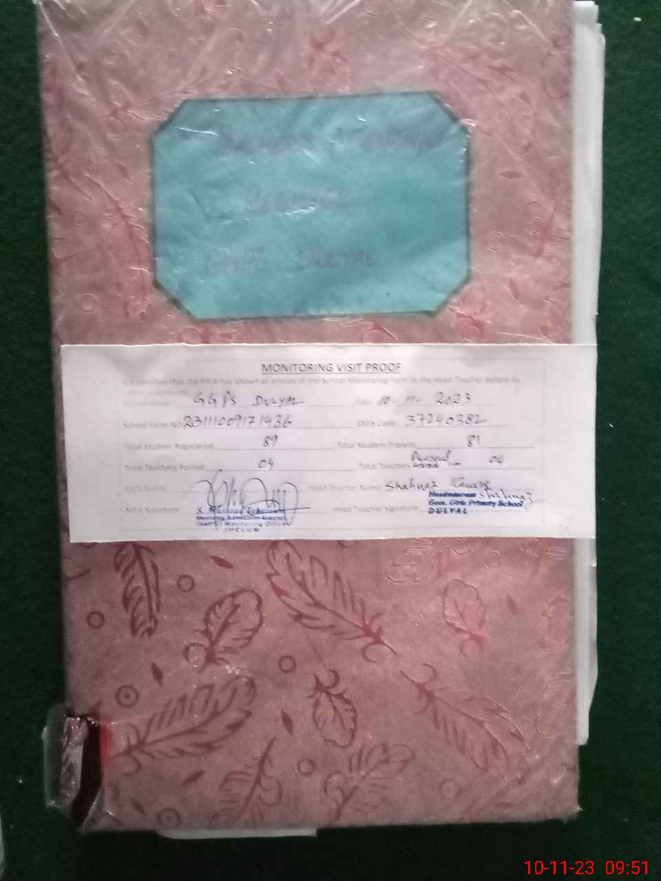 | Attendance Register | Head Teacher | MEA with School | Visit Proof |