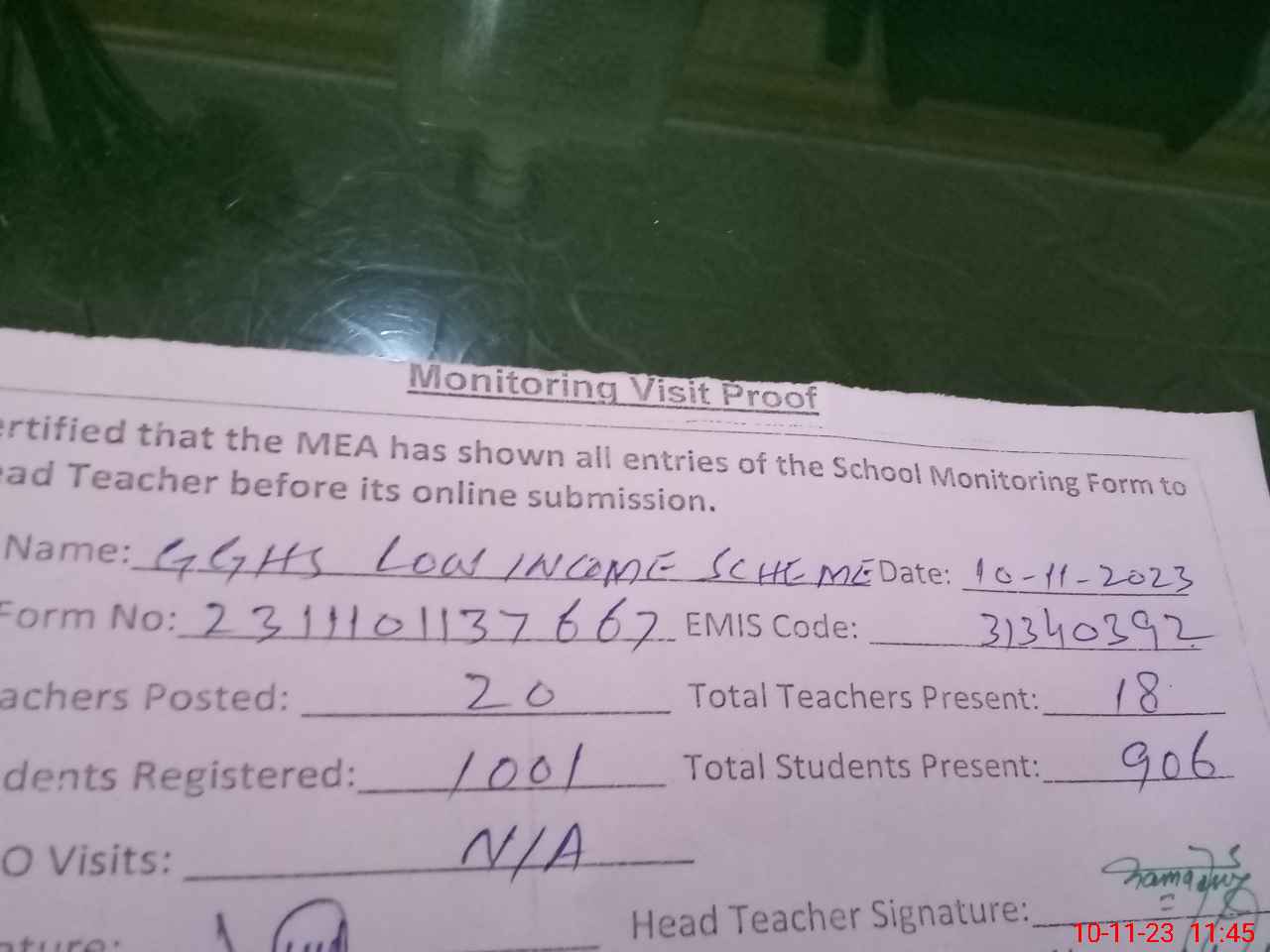 | EMIS Code: 31340392 | Name of School: GGHS LOW INCOME SCHEME NO.1 SETLLITE TOWN | |||