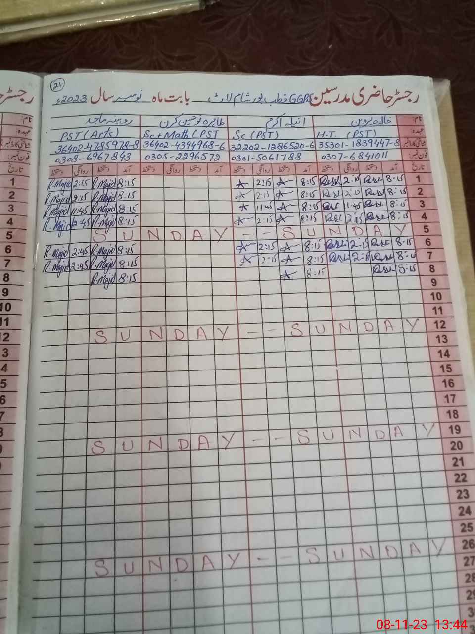 | Name: An**** Ak**** Designation: (School Headmaster's/Headmistress's) PST Phone/Cell Number: 03**** |