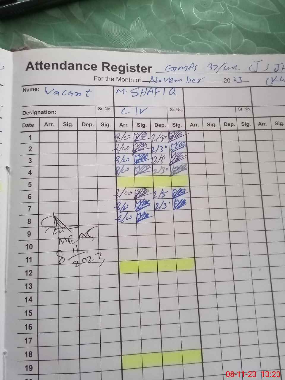 | Monitoring Date: 08-11-2023 | Start Time: 08-11-2023 12:59 PM | End Time: 08-11-2023 01:29 PM | Name of MEA: Ab**** Ja**** (S**** 20**** | |