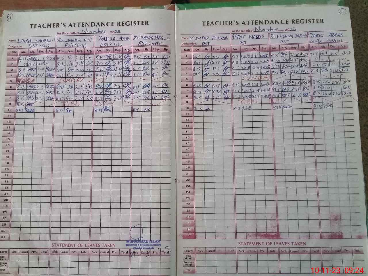 | Monitoring Date: 10-11-2023 | Start Time: 10-11-2023 08:49 AM | End Time: 10-11-2023 09:26 AM | Name of MEA: MU**** IS**** | |