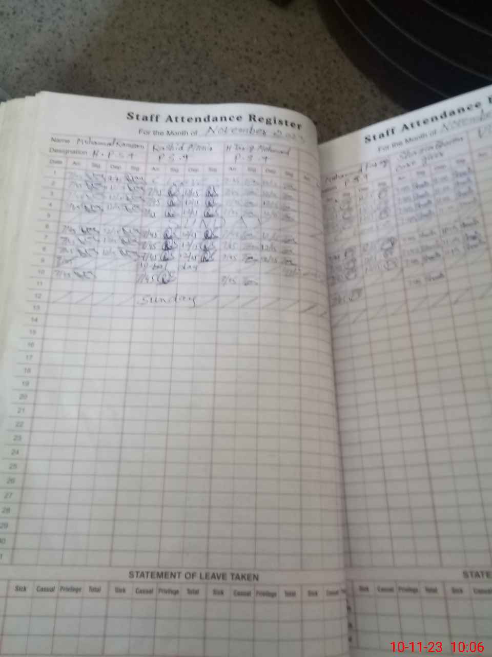 | CNIC | Full Name | Designation | R/C | Absence During Last Calender Month |