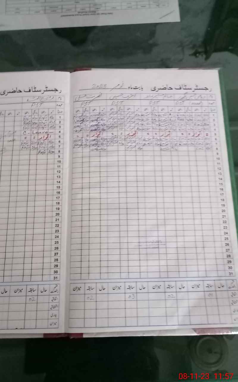 | CNIC | Full Name | Designation | R/C | Absence During Last Calender Month |