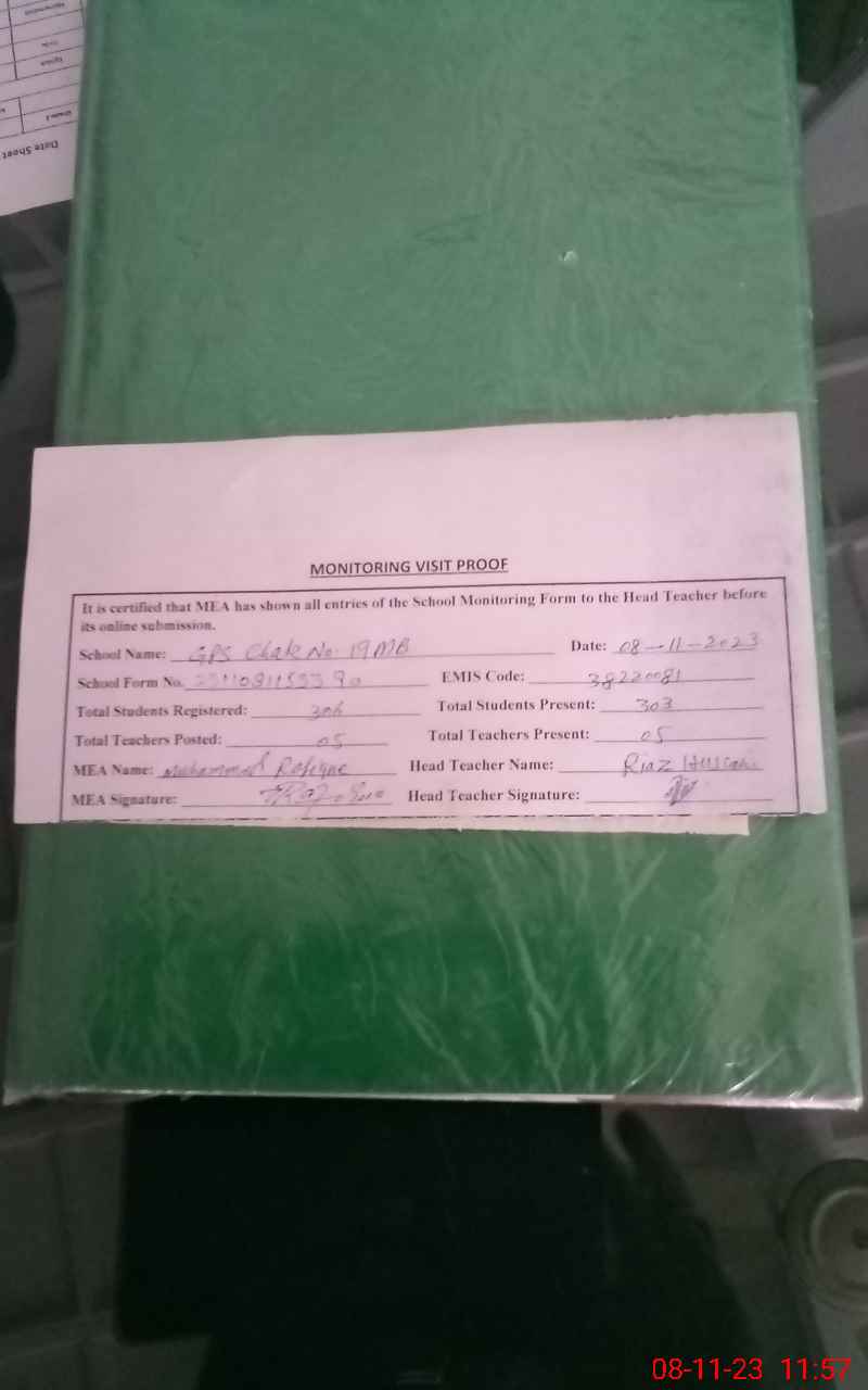 | EMIS Code: 38220081 | Name of School: GPS CHAK NO. 19 MB | |||