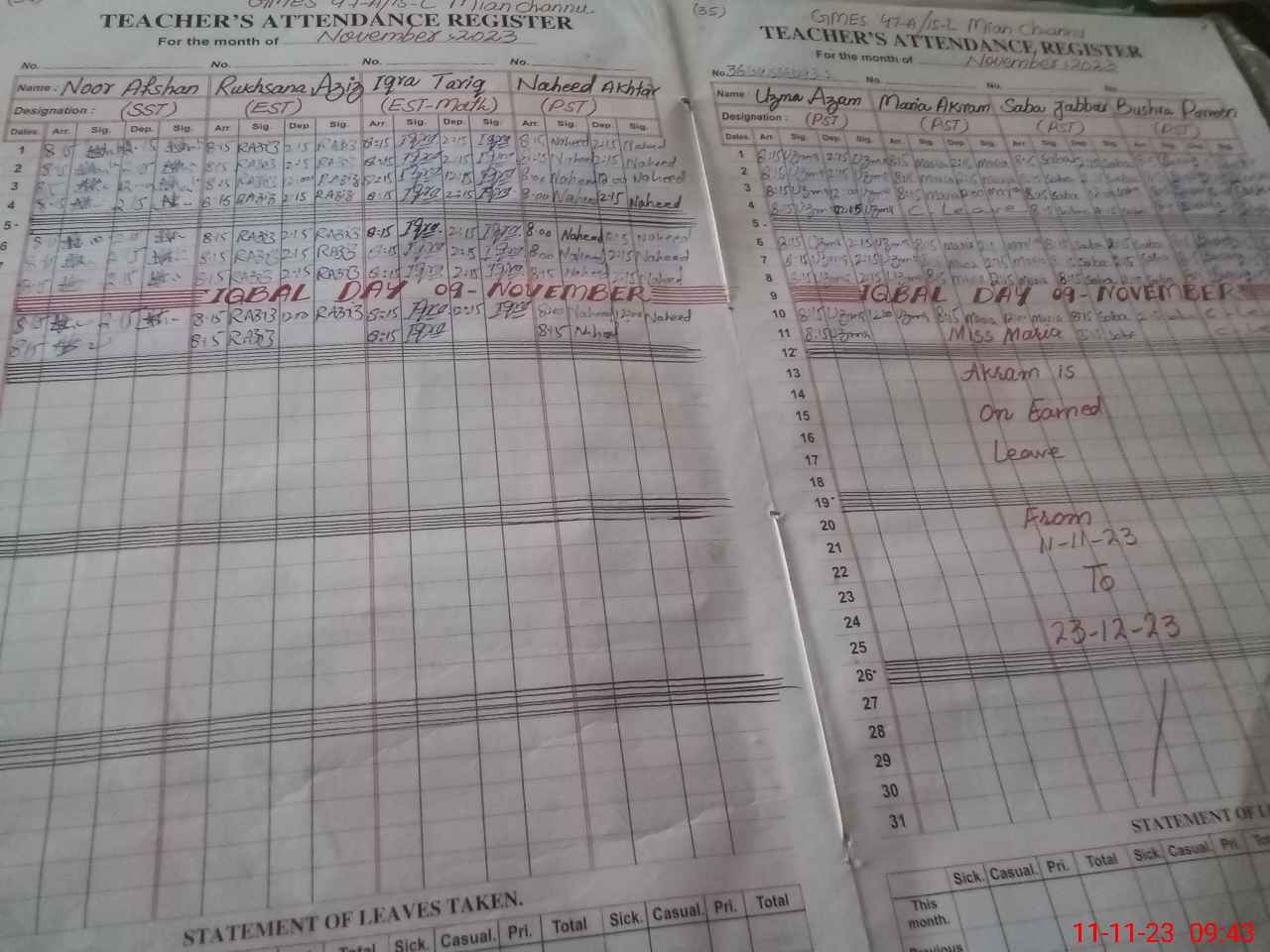 | District: KHANEWAL | Tehsil: MIAN CHANNU | Markaz: MIAN CHANNU-II - FEMALE | Level: Middle | |