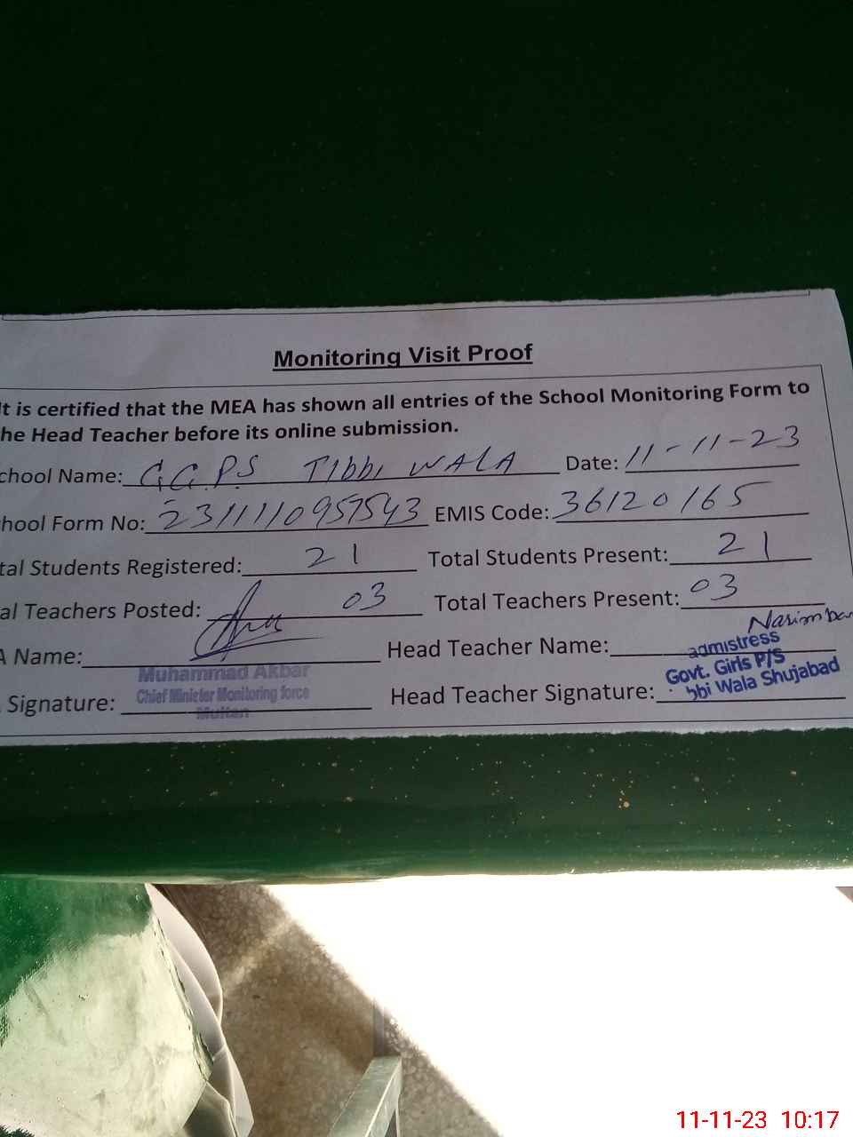 | EMIS Code: 36120165 | Name of School: GGPS TIBBI WALA SHUJABAD | |||