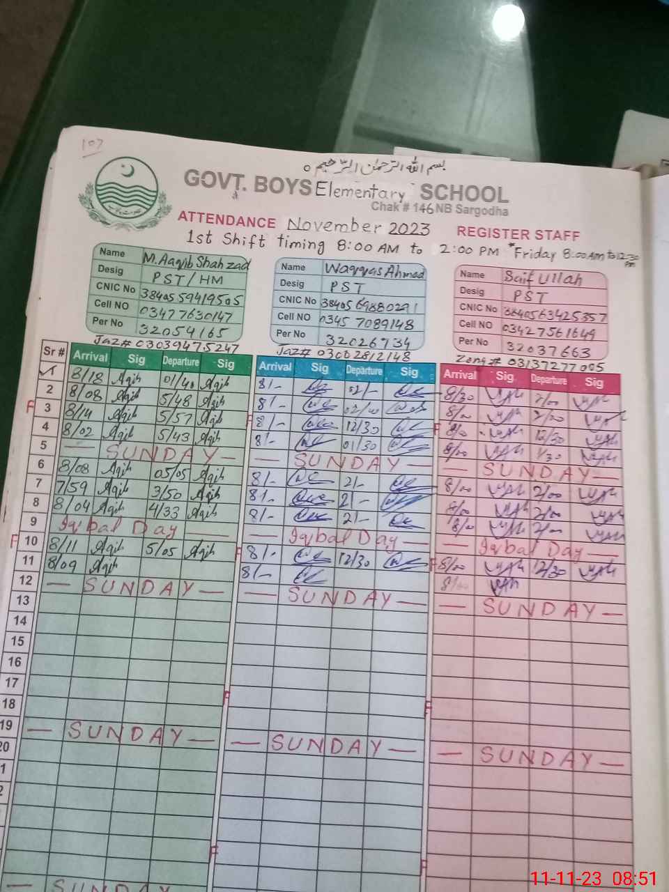 | CNIC | Full Name | Designation | R/C | Absence During Last Calender Month |
