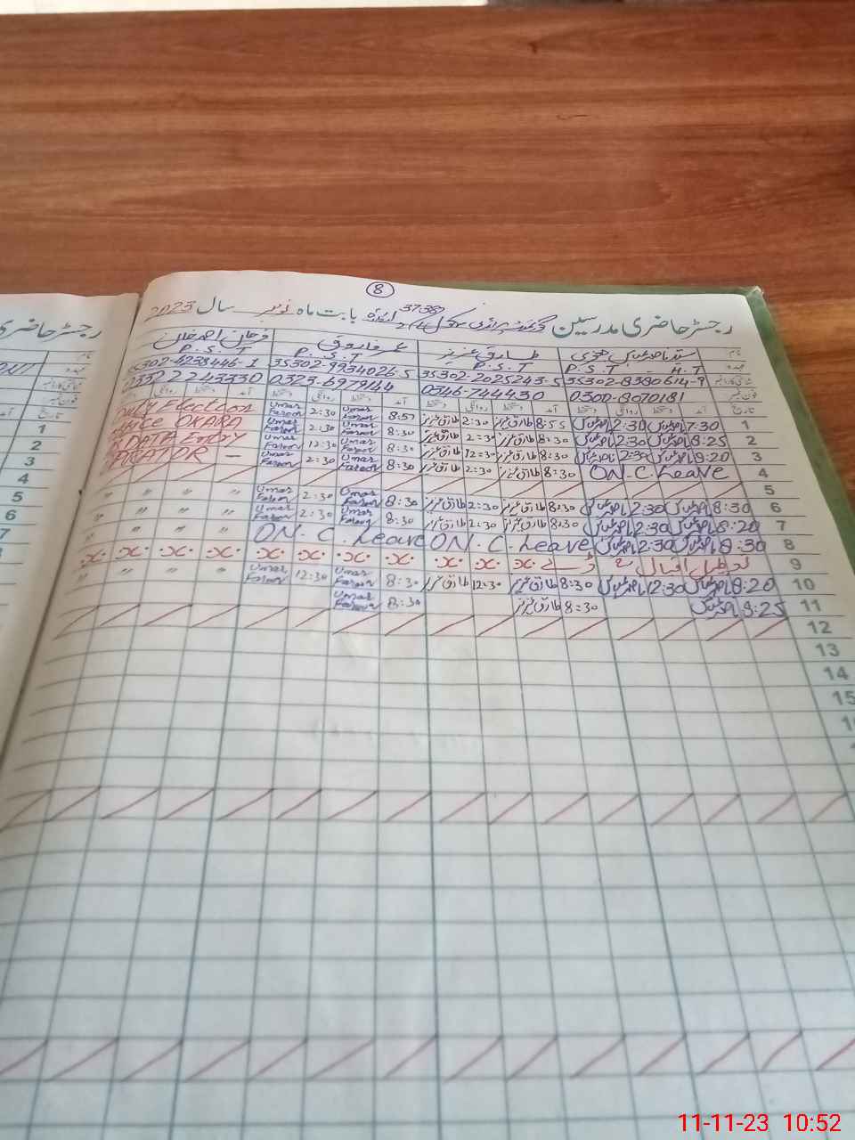 | CNIC | Full Name | Designation | R/C | Absence during last cal. month |