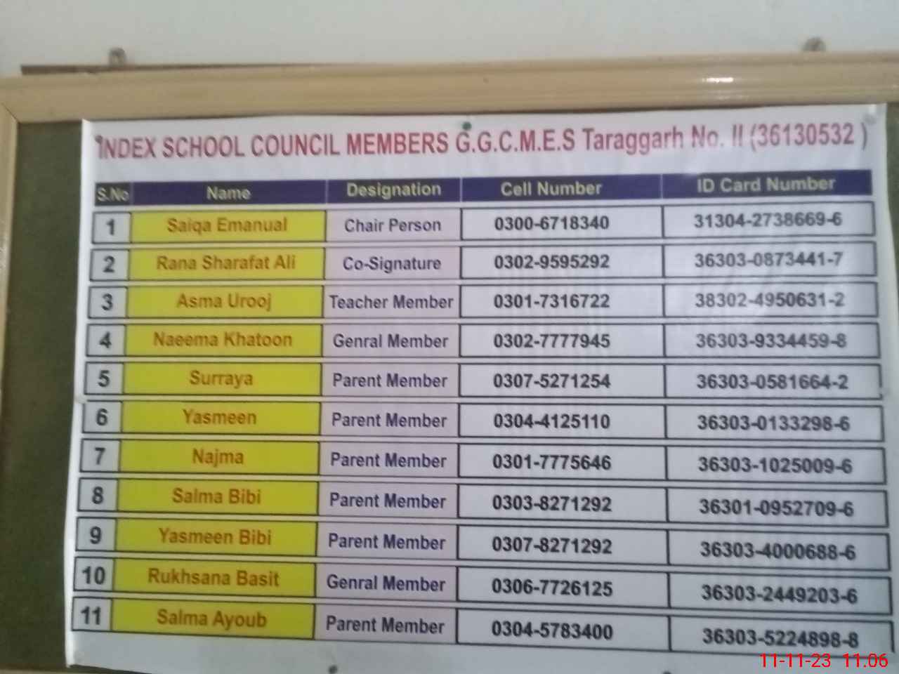 | Name: NA**** SU**** Designation: (School Headmaster's/Headmistress's) INCHARGE EST ARTS Phone/Cell Number: 03**** |